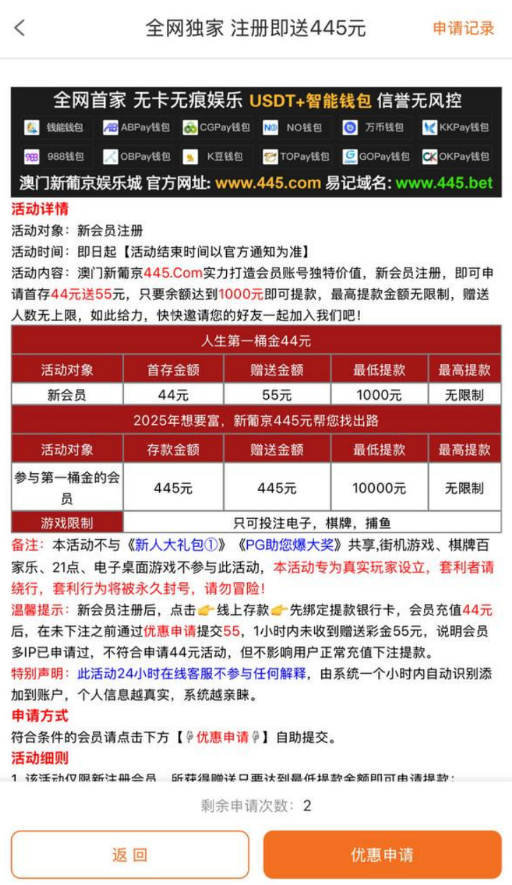 【礼赏会员①】首存44送55元,最低提款1000元!首存445送445,最低提款10000元(多IP一律不处理,不听解释)