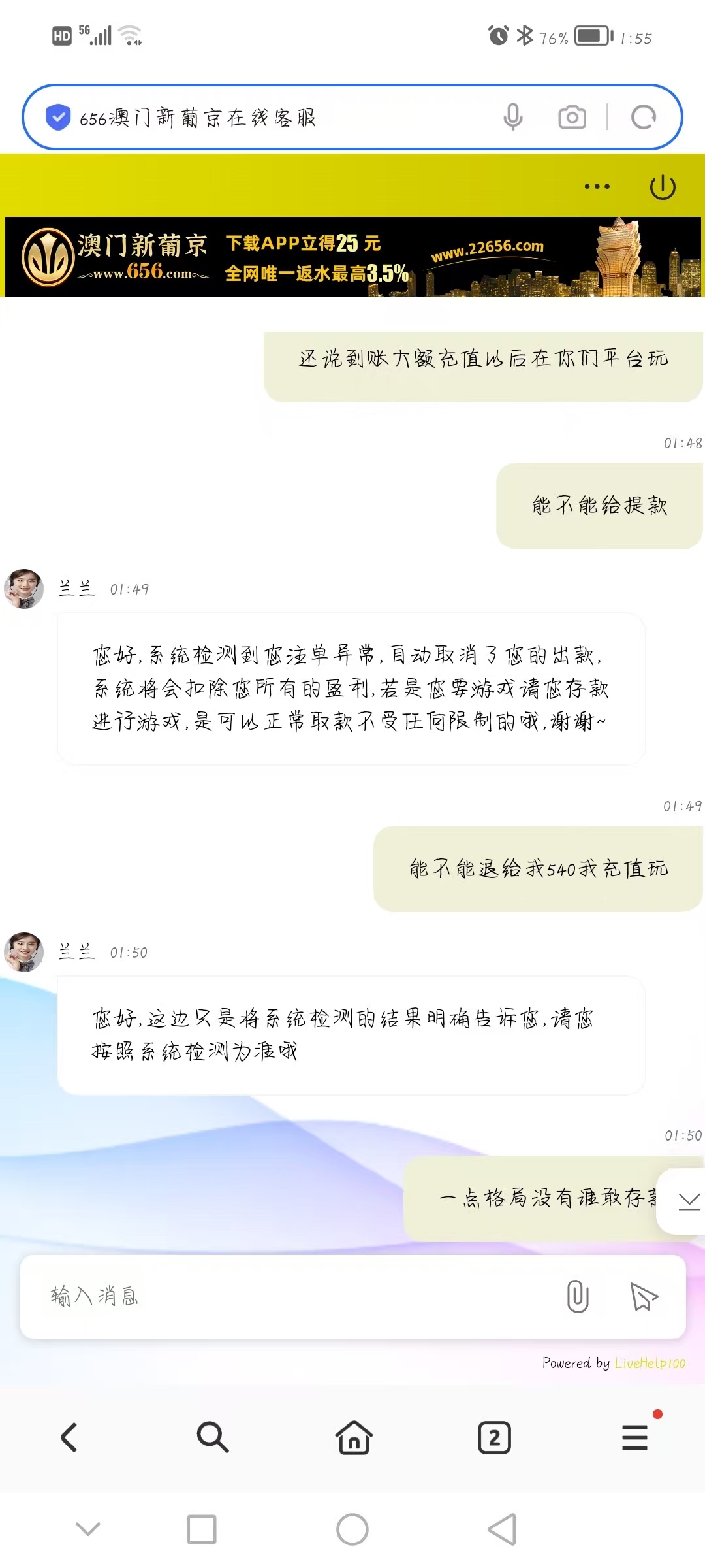 【656黑台送的25不给出款】