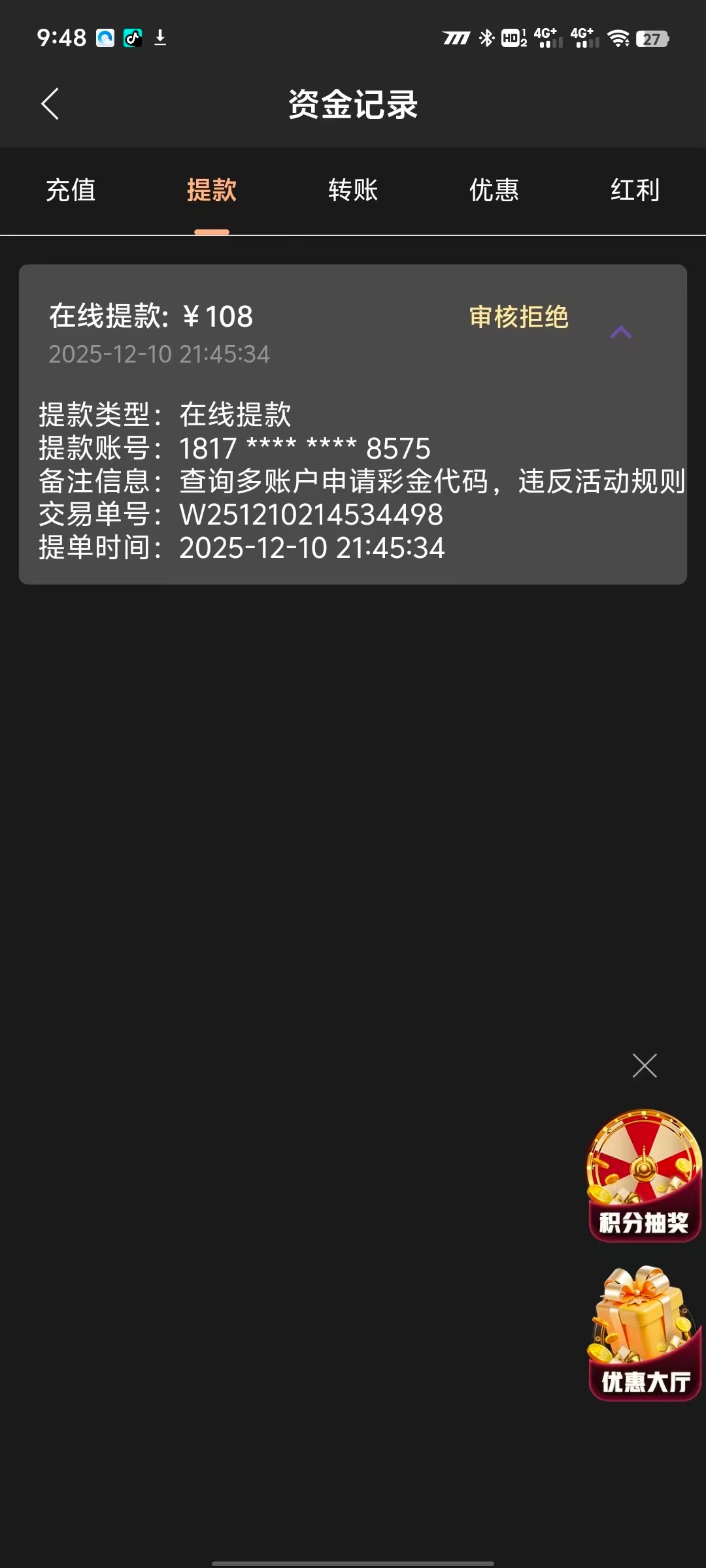 oomnbv 这中台子就是惯的,领个彩金还要充值,冲个1加1还有10多倍水,就是割韭菜的
