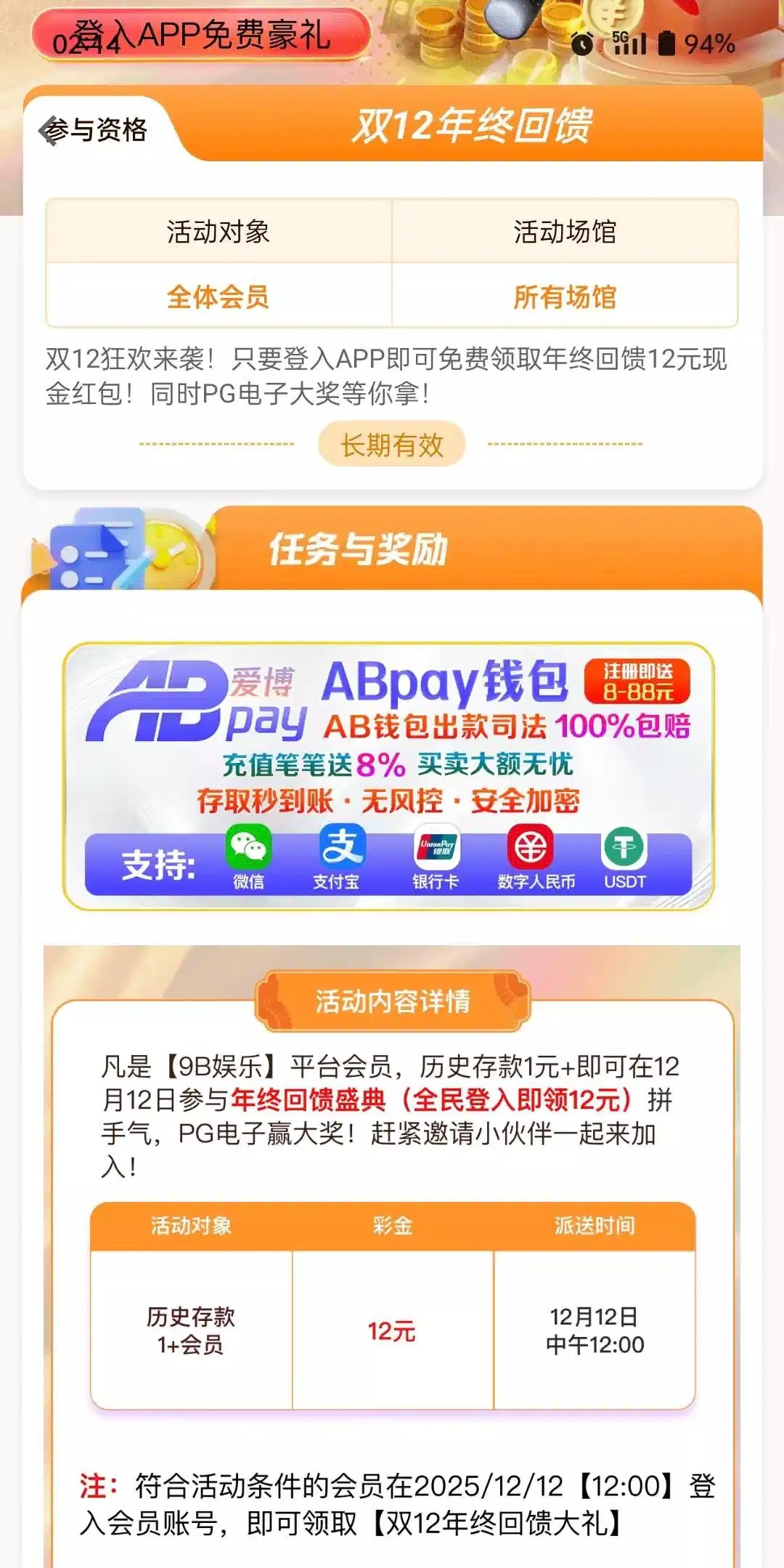 【9B娱乐】 双12回馈
