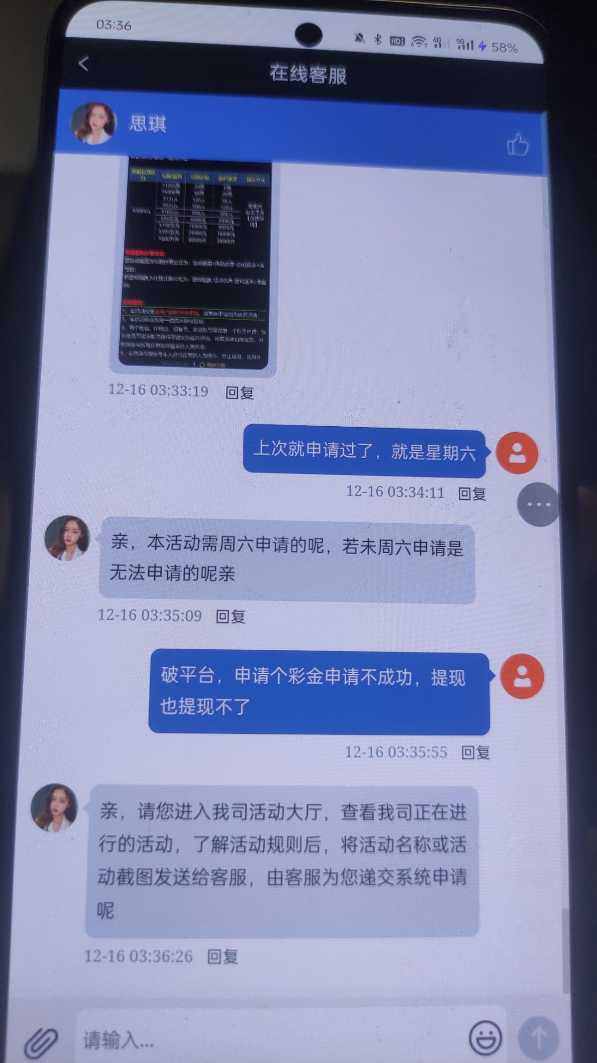 垃圾平台,充值2000赢了6000提现5000不给提,而且申请彩金也不给通过,2000块就当喂狗了
