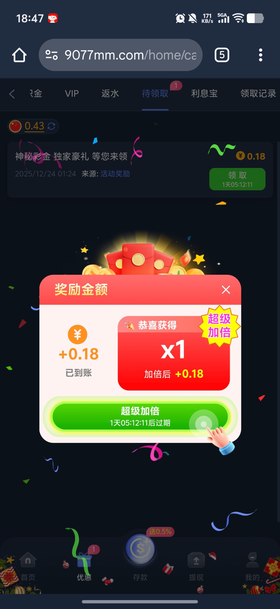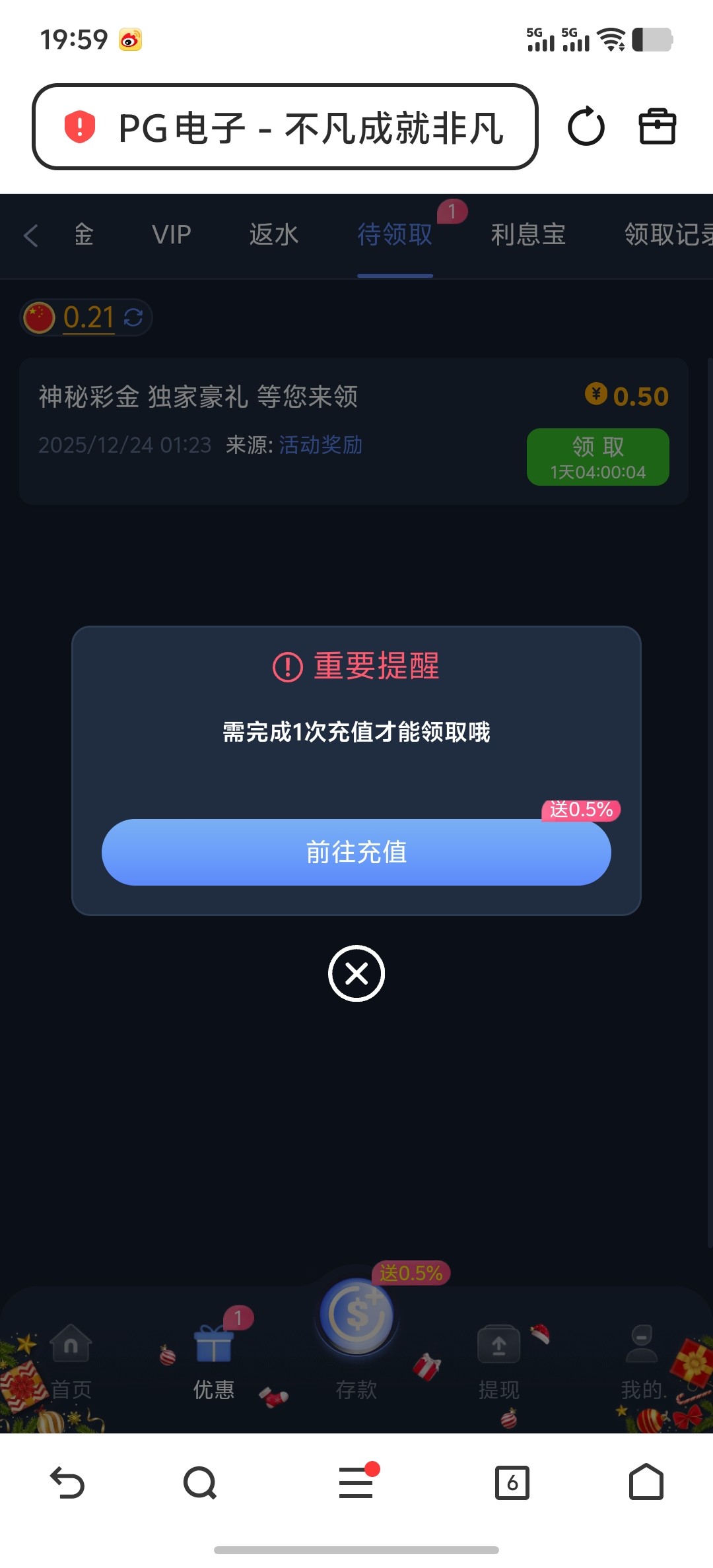 送25彩金,需要充值任意金额领取