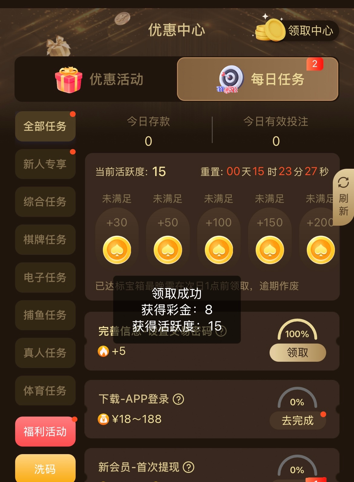 注册完善信息 优惠任务领取