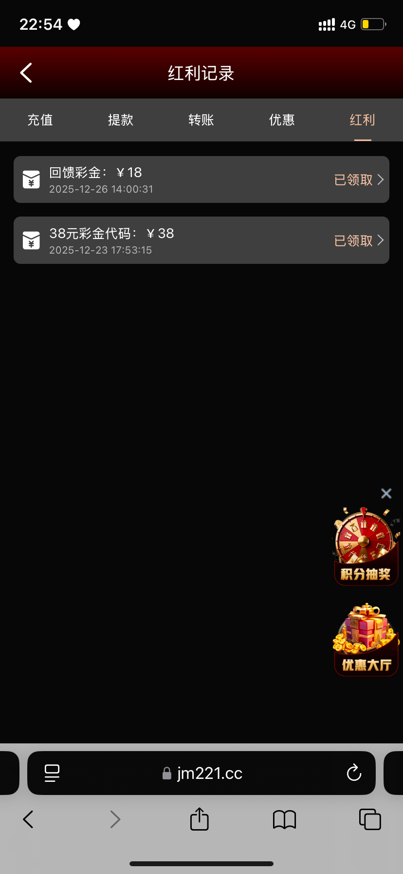 之前充过一百的老哥可以去看,刚登陆发现26号的时候回馈了18链接广告区有