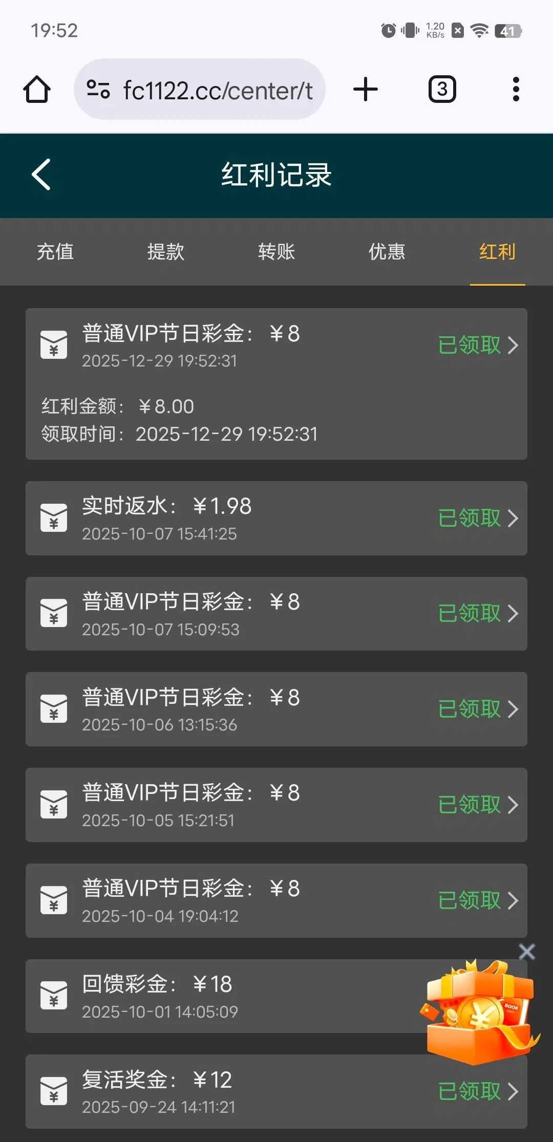 之前充值过领到了
