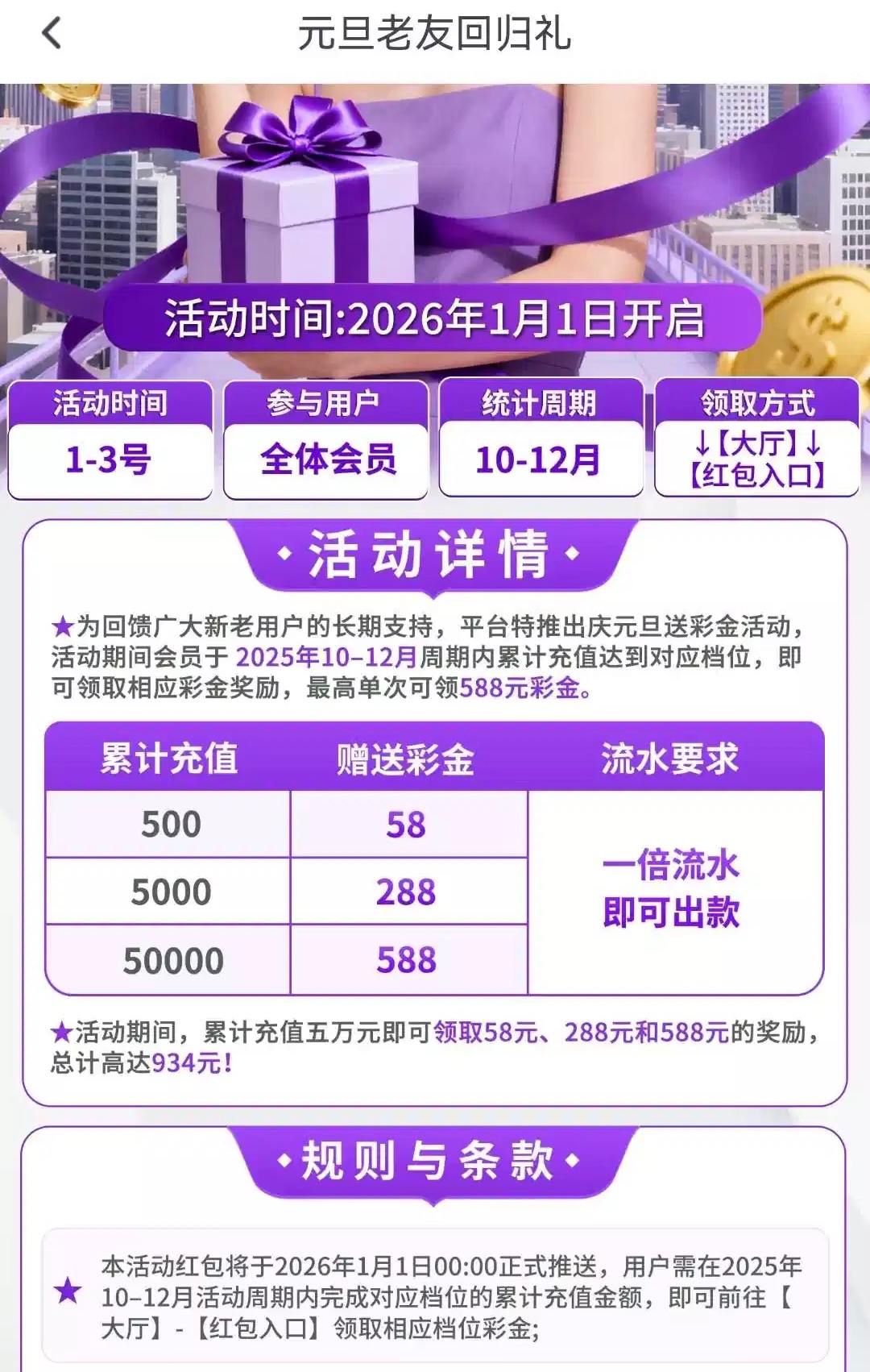 1月1日老友回归礼 10-12有充值500的别错过 有2个台贝壳搜索就出来了 大满贯:28dmg.com