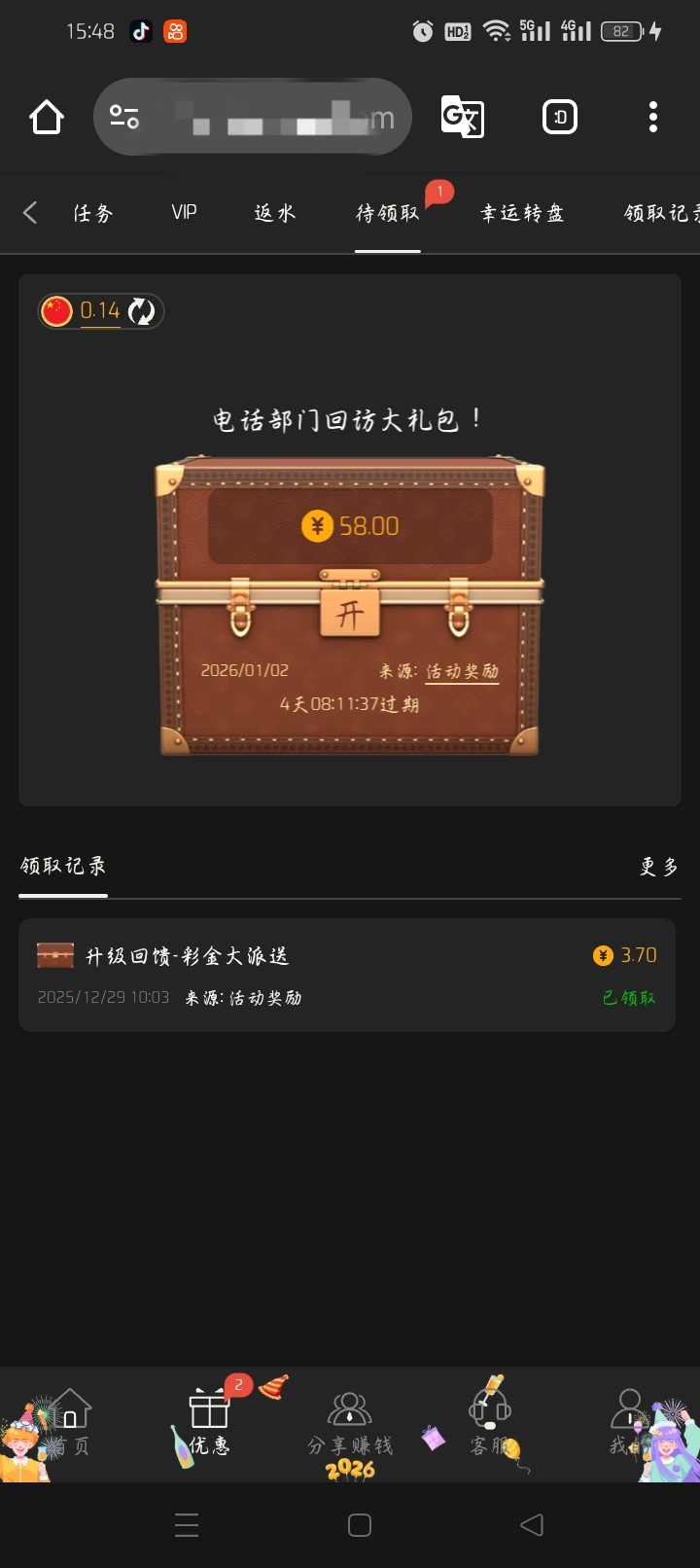 有号的去看一下,基本都有,前几天刚白嫖一把,现在又来我也才历史上充了100,送了我58