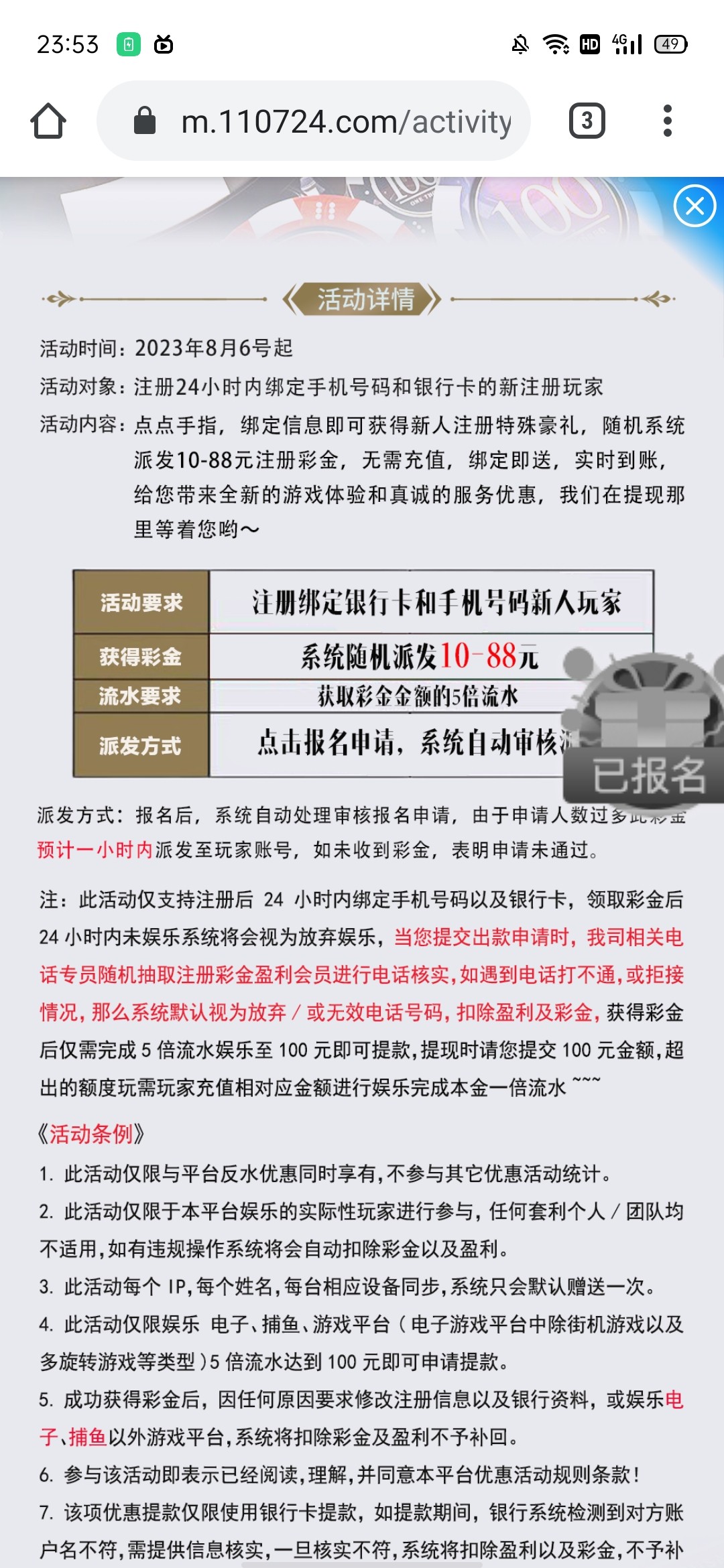 注册绑卡优惠里自助领取彩金