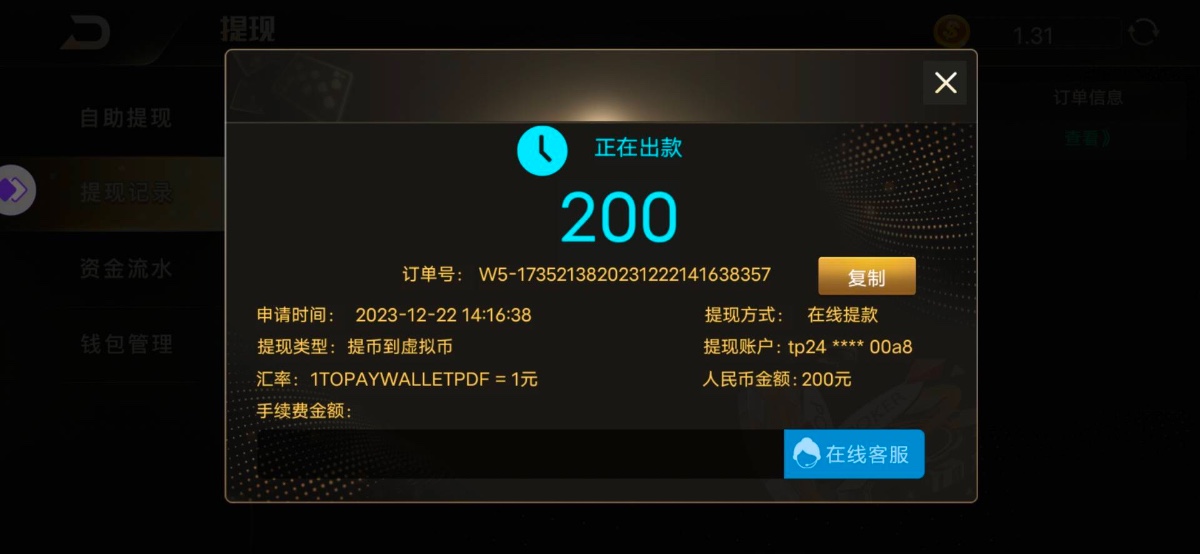 充值了131,提现200也黑,还是裸打的,大家注意了